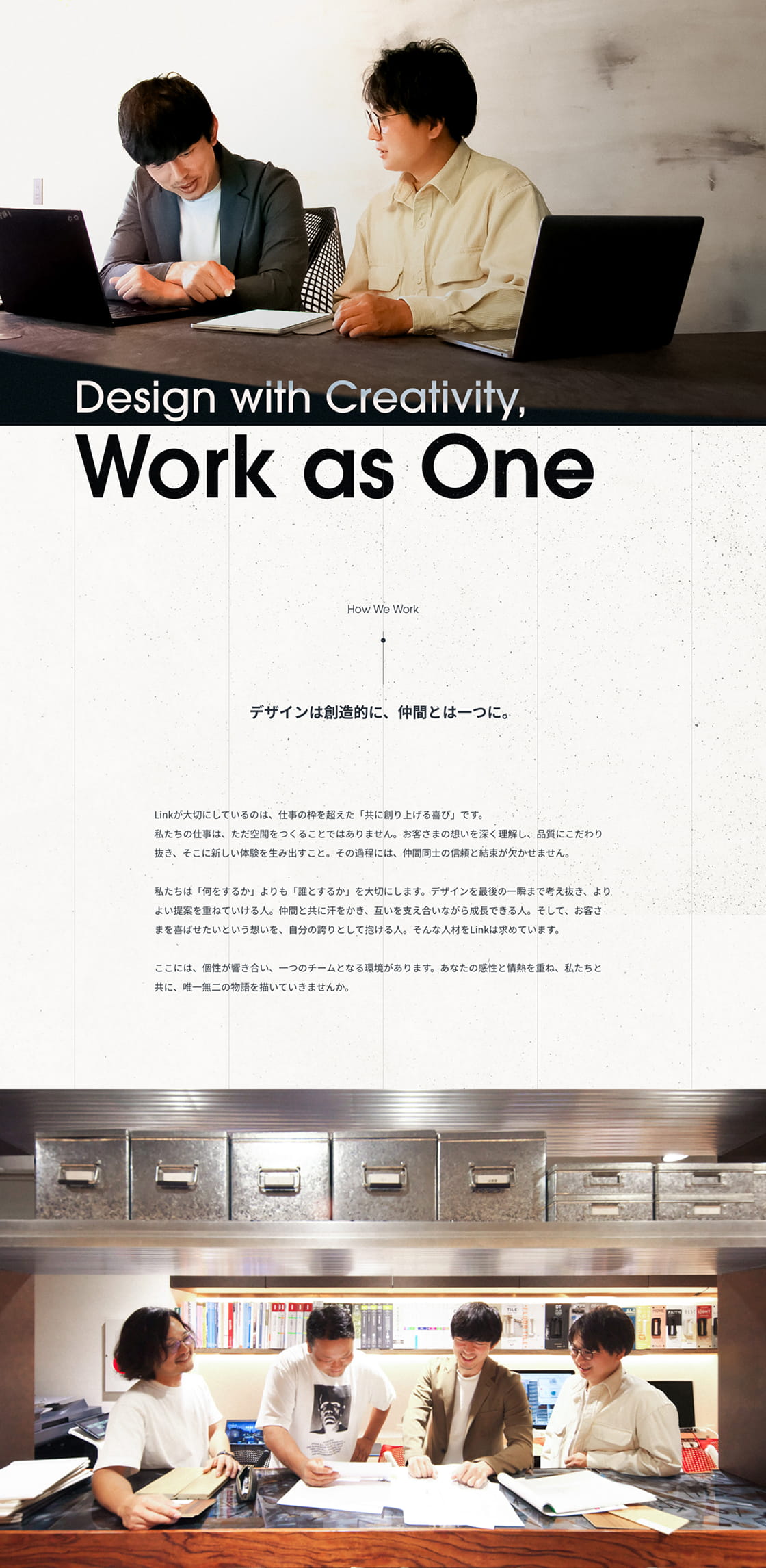 このロゴを起点に、Webサイトのリニューアルでは「かっこよさ」と「人のあたたかさ」の共存をテーマに、Link様が大切にしている仲間・信頼・センスを、洗練されたデザインと柔らかな空気感で表現しました。