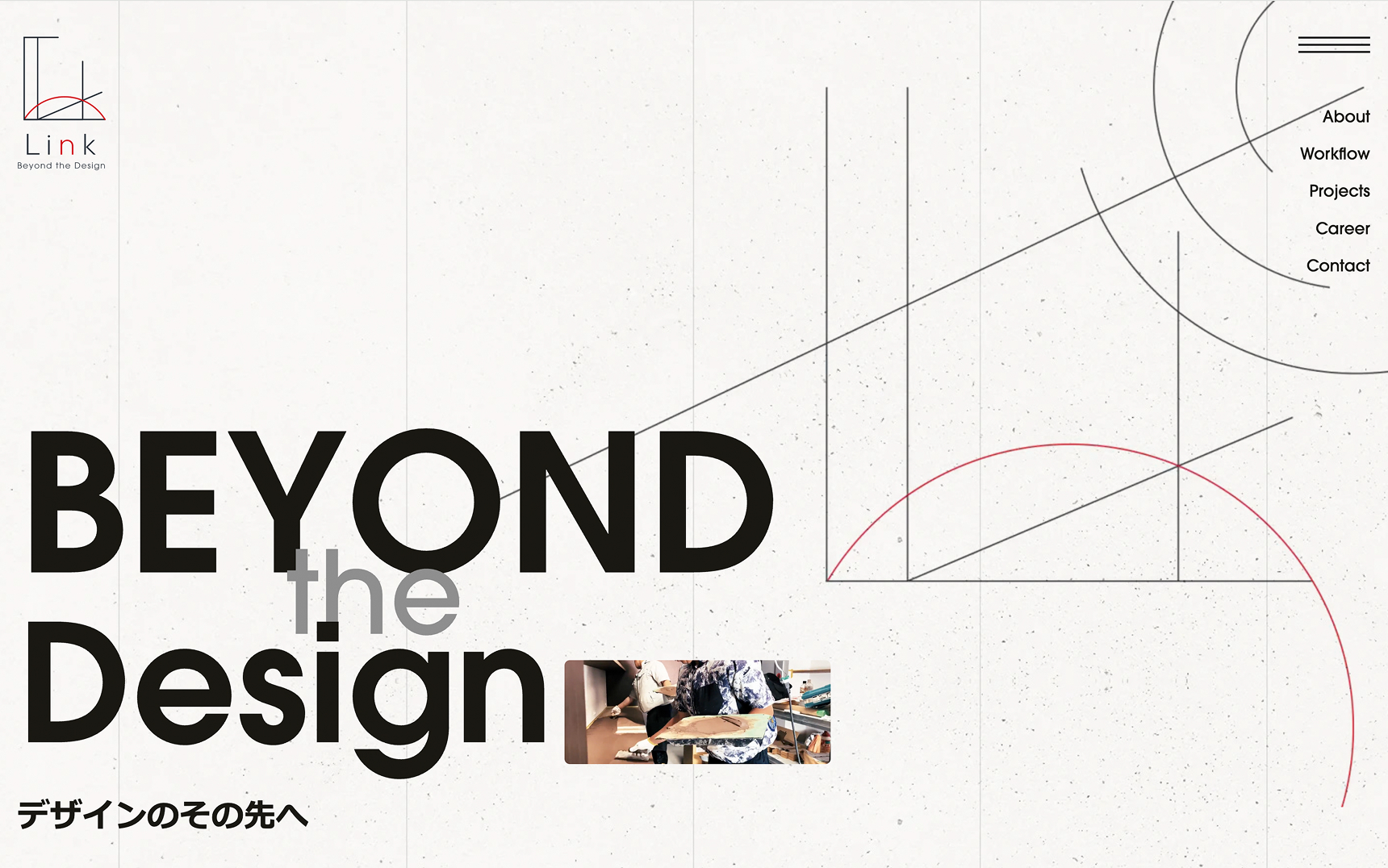 サイト全体のキービジュアルには、「Beyond the Design ─ デザインのその先へ」というメッセージ。